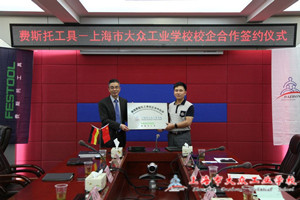2015年7月6号下午,在1号楼406会议室上海市大众工业学校与费斯托工具有限公司两家进行了校企合作的签约仪式。出席该次活动的有费斯托工具的张俊明董事总经理、汽车产品系统事业部销售总监徐超、华东区销售经理朱海燕、陈俊,上海市大众工业学校副校长付磊,汽车工程系主任邱伟明、副主任吕冬梅、骨干教师郑烨珺、朱照峰。