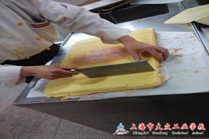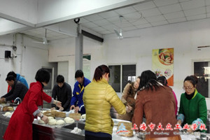 中午时分,有几位老师一吃完午饭便迫不及待地来到了烹饪实训室。先由厨房工作人员完成洗菜、剁馅、和面等前期准备。老师们分成两大组,一组是做包子,一组是做蛋糕,会做的、不会做的,纷纷上阵,共同体验自己动手的乐趣。只见这边包包子的老师,在师傅的指引下,熟悉包包子的工艺流程后,便鼓足干劲,分工明确,配合默契,忙得不亦乐乎,埋头苦“包”。随着包子的新鲜出笼,大家也迫不及待的拿起来,虽然有的包子陷都露出来了,但各位老师对自己的劳动成果还是无比高兴的,品尝自己的劳动果实,脸上洋溢着开心和喜悦。