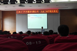 2016年4月25日下午13:20,大众工业学校汽车工程系14级全体同学来到了阶梯教室,参加上海小兰汽车有限公司的宣讲会。
