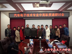 2016年12月7日星期三,在上海市大众工业学校1号楼会议室,由教务处周惠莉副主任主持召开汽车电子技术专业中高职贯通研讨会。出席此次会议的有上海工商职业技术学院的陈廷雨副院长、黄虎主任、袁春华老师、崔文一老师、孙洁老师、林金地老师、上海市大众工业学校付磊副校长、教务处徐军主任、周惠莉副主任、汽车工程系吕冬梅副主任、邱伟明老师、乐燕芬老师、彭欢老师、陈旭老师。