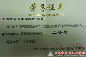 接到比赛任务后,并未退缩,凭借不服输的劲头,利用整个暑假,走访4s店,在实训车间,模拟实景赛制,艰苦训练。该比赛前期经过初赛,中高职将近400只队伍参加初赛,最终每个项目组选出36只队伍参加接下来的决赛。我们汽车工程系的五位年轻教师李创、胡俊组队的汽车营销项目,梁秀亮和严杏鹏组队的维修项目,李杰杰的钣金项目。三个月的磨砺,三个月的汗流浃背,三个月的辛苦备赛,三个月的日日夜夜,最终经过这两天激烈的比赛,我们喜获了营销赛项二等奖、钣金赛项三等奖、维修优胜奖的好成绩。