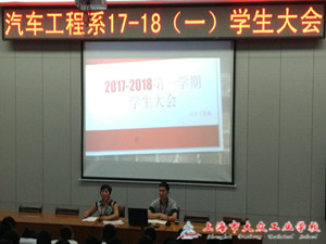 2017年9月27日,星期三,在上海市大众工业学校阶梯教室,由汽车工程系主任吕冬梅老师主持,召开了汽车工程系15、16级学生大会。
