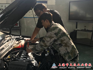 平时除了上理论课,傅老师还负责指导学生汽车电气的实训。实训课上,傅老师首先是给同学们强调了实习期间的安全问题,希望同学们牢固树立“安全第一”的思想,切实提高安全防范意识,严格遵守纪律,密切合作。然后向同学们介绍汽车电气的主要零部件及其作用,并带领他们实物认知。之后傅老师讲解了汽车电气系统的几种常见故障,如蓄电池严重亏电,蓄电池正、负极柱上的电缆接头松动或接触不良,控制线路断路,再针对提前设置好的故障教同学们如何一步步地按照规范化操作来排除故障,再三强调要按照实训指导手册要求的步骤来进行规范操作,同时指出故障排除的一般原则是从易到难。