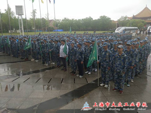虽天公不作美,出发时就下起了淅淅沥沥的小雨,但丝毫不减学生们高昂的热情。路上的时间总是煎熬的,总想快些到达,一路上欢声笑语不断,憧憬着即将到来的活动和探险。终于到达营地,同学们在教官的带领下换好军装,整装待发。营地教官为大家做了入营动员,慷慨激昂的讲话让同学们备受鼓舞,也更加深刻体会到纪律意识。紧接着,同学们来到绿舟剧场参加了庄重的入营仪式。学校旗手和发言同学表现优秀,全体同学在国旗下庄严宣誓。当看到大众工业的校旗在东方绿洲上空冉冉升起的时候,同学们自豪地唱着国歌,声音洪亮。随着简短而隆重的入营仪式的召开,五天的军训国防教育活动也拉开了序幕。