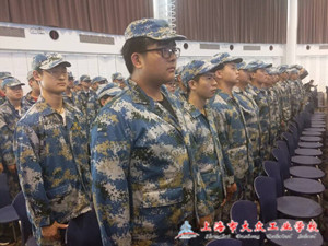 入营的第一天,同学们表现出很好的适应能力,很快融入了军营生活,大家的表现都非常出色,第二天,全体师生还观看了庆祝人民海军成立70周年演出,绚丽的舞台,精湛的表演,同学们聆听一位海军政务的故事,进行了一场爱国主义教育。相信在未来的几天,他们将会有更好的成绩展现给教官、老师和远在家中的父母!让我们共同见证他们的成长,相信我校的同学们一定可以不负所望顺利并且圆满地完成此次东方绿舟国防军事活动。