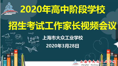 为了做好2020年上海市普通高校考试招生报名工作,妥善解决家长关心的各项问题,我校3月28日下午在钉钉平台直播召开了2020年高中阶段考生升学报考工作家长视频会议。