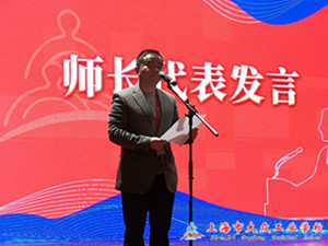 汽车工程系主任徐剑老师作为师长代表发言,他希望同学们能在以后的道路上可以继续保持努力刻苦的学习态度,变得更加有责任,对他人讲诚信,对父母讲孝心,成为被社会认可的人,用青春和智慧托起明天的太阳,书写人生美妙的篇章。