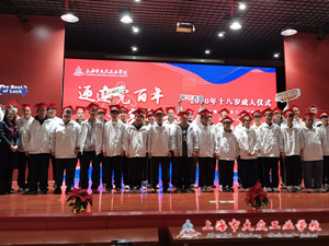 2020年11月27日周五下午,我校汽车工程系2018级的全体学生在多媒体教室举行了“成人礼”仪式。同学们佩戴好成人帽,在班主任老师的带领下早早地集队进入会场。成人仪式在雄在雄壮的国歌声中开始。全体师生向国旗行注目礼,神情肃穆,唱国歌。彭欢老师领着同学们向国旗庄严宣誓。