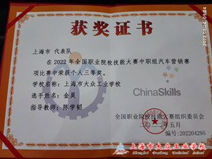 本次比赛共设置汽车展厅销售、汽车服务接待、汽车配件管理和汽车网络销售等模块,重点考察参赛选手汽车营销与服务综合技能,突出展现参赛选手精湛技艺。四天的比赛,参赛选手在比赛项目上切磋技艺,赛胆识、拼技能、展风采,回顾当天比赛的赛况,金昊表示在比赛开始时虽然有些许紧张,害怕出差错,但是想到这几个月的刻苦训练,还有指导老师的热情鼓励,心情便逐渐放松下来,经过激烈竞争,最后顺利完成比赛,并取得了三等奖的好成绩。