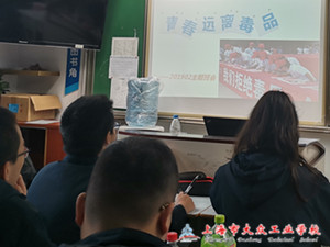 首先,各班级利用班会课时间召开了禁毒主题班会。通过班会课教育,让同学们进一步解了常见毒品的种类以及对个人、家庭、社会的危害。通过“有人劝你吸毒,你会怎么做?”的集体讨论,同学们得出共识:直接拒绝、借故离开、提出相反意见;转移话题,秘密报案;悄悄拨打110或者告诉信任的长辈、老师;当受到毒贩或吸毒人员的威胁时,一定要第一时间告诉家长或老师。