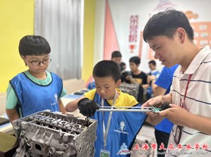 为使体验者们拥有更加愉悦、新奇的活动体验,系部负责教师提前就做了充分的准备工作,精心设计了两项体验课程,让孩子们眼界大开,直呼过瘾。第一项课程是发动机拆装,分为两个小组,一组学员根据维修手册步骤拆发动机气缸盖,认知专业工具。另一组学员根据装配图进行发动机装配,全部装好之后,两组再进行对调。第二项课程是进行运输大比拼,用翻斗车去夹物品,运到规定的位置,比较哪一组的速度最快。