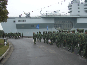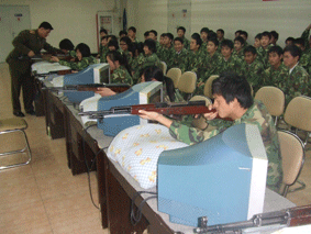 在射击训练馆,每一名同学都可以亲自动手触摸到真正的枪支,并可以在接受教官的教育和教导后进行模拟射击训练。最后的总体成绩还是非常不错的,每一个学生有三十发子弹,有的可以得到240环的好成绩,不过也有的同学出现了连续脱靶的现象。短暂的课程很快就结束了,最重要的是学生在亲自实践的过程当中接受了教育,明白国防的重要性。
