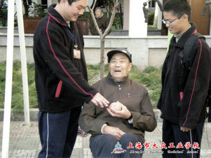 下午3点,刚刚结束一周紧张的学习,志愿者服务小分队的队员们没停下歇息的脚步,集合前往嘉定社会福利院。一到目的地,那里的老人还没等同学们放下书包,就与我们的志愿者聊了天来,原来,这批志愿者一直坚持每两周探望一次老人,从入学至今没落下一次活动。