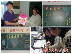 教师节在即,校团委也发起了许多活动,而数控部的学子们也积极响应与行动中。在《写给教师的一封信》活动、完成关于庆祝教师节的黑板报、为身边的老师齐献教师节的礼物等的种种活动中,学子们用内心真实的感受,表达着对老师们的深深敬意。感人肺腑的赞美词,他们一笔一划书写得格外认真;黑板报的文章,他们自己动手、上网查找;教师节的礼物与节目,他们计划周详精挑细选……