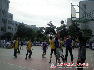 很快比赛就开始了,在一阵阵的加油声中,双方互有攻守,比分你追我赶。围观的学生们络绎不绝,将篮球场外围团团围住。场内真枪实战,场外加油不断。这边一个远投三分,那边一个三分还以颜色,火爆程度,不亚于体育馆内的正规比赛。不时,精彩的上篮和防守封盖频频出现。最让人难忘最后时刻,数控119C2分还以微弱的比分领先。正当所有的人都认为119C2能有惊无险地拿下比赛的时候,117C2班的那记压哨投篮,扭转了乾坤。117C2以1分险胜。