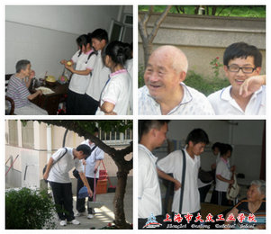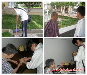 院长把他们的工作安排好之后,于是志愿者服务队队员们分成几个小队穿梭在这个福利院间,为这里的孤寡老人送去了关怀与欢乐!一些同学迫不及待地到了老人的房间,为他们削苹果,听这些都是从枪林弹雨中走过来的老人讲他们的故事。老人们也很乐意分享他们的过去,让学生们听到很多曾经的美好故事。