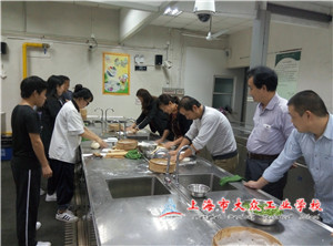 面点时间定在下午一点,选择做面点的老师们也早早地进入烹饪实训室,在烹饪老师的指导下,做起了面点,这次的任务是做花卷:称面团、揉面团、铺开涂油撒葱花、放入笼屉……“自己动手丰衣足食”,老师们精心做着每一项,体会着每一个步骤带来的成就感和前所未有的满足感,仿佛一切置身事外。