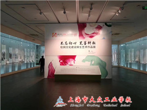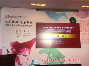 为了此次艺术展的美好体现,现代制造系陈玲莲老师、杜天一老师、杜文强老师从2017年9月份开始了紧锣密鼓的筹备工作,作为嘉定区“竹刻非物质文化遗产”的传承人,陈玲莲老师很重视这次展出,为此精心准备数月,只为让竹刻艺术在展会上大放异彩。我系杜文强老师、杜天一老师也精心烧制陶艺、绘制山水画、人物画,正所谓“十年磨一剑”,展会上完美作品正是像他们一样对文化和专业技能的诠释。作为执笔仅有数月的毛笔字‘新人’,我系副主任孙琪的毛笔字也被展出了,“在众多名家展品中,我一个刚刚起步的小卒也大胆拿出了自己笨拙的作品,应该为自己点赞,但也看到了大大的差距,我须不断努力!”孙主任谦逊道。