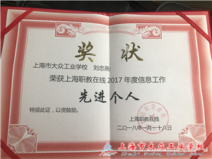 随后,由张福顺调研员宣读获奖单位和个人,并为其颁奖。我校作为“2017年度信息工作杰出校”荣获佳奖,刘忠燕老师荣获“上海市信息工作先进个人”。2017年已经灿烂绽放,2018年已在通往盛放的路上。着眼职教发展,加强中职校间的动态交流,关注人才培养模式、贴近国务院产教融合的决定,趁势而上拼搏进取共赢未来。