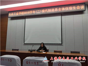 上海市大众工业学校现代制造系新学期住宿生大会于2019年3月6日晚18:30在校阶梯教室隆重召开。此次会议主要针对现代制造系130余名住宿学生,现代制造系副主任孙琪主持了此次会议并发表了讲话。