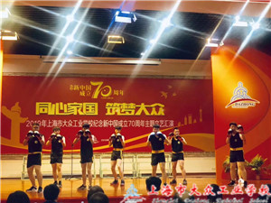 为庆祝新中国成立70周年,传承红色文化,展现青年学生才艺,丰富广大学生校园生活,5月29日,上海市大众工业学校开展了“同心家园 筑梦大众”庆祝新中国成立70周年文艺汇演活动,进一步激发了广大师生的爱国热情.