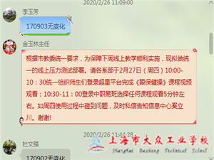 根据市教委统一要求,为保障下周线上教学顺利实施,现拟做统一的线上压力测试部署。上海市大众工业学校于2月27日(周四)10:00-10:30统一组织师生们登录超星平台完成《眼保健操》课程视频观看,并于10:30-11:00登录中职易班选择任何课程观看5分钟左右的教学活动。