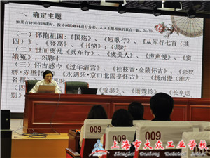 会上,上海市信息技术学校祝纪景老师和上海市曹杨职业技术学校邵彩洪老师就专题教学分别作了展示和分享。两位老师在选题上不谋而合,都选择了古诗文教学专业,并针对本专题作了一次同课异构的专题教学设计,设计思路清晰、教学活动丰富多彩、素养评价落实到位、反思透彻,这两位精彩的专题教学设计展示开阔了与会教师们的思维,让与会教师们收获满满。