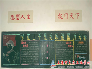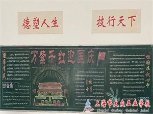 上海市大众工业学校近期举办了2021-2022学年第一学期第一期特色黑板报活动,现代制造系本期黑板报的主题是迎国庆。系部19个班级根据学校的要求,保质保量的完成了“迎国庆”主题黑板报的制作。