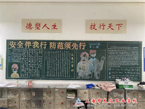 为进一步规范校园黑板报管理,丰富师生文化内涵,加强校园文化建设,应学校要求现代制造系2021-2022学年第二学期第一期的黑板报主题为“公共安全教育”。
