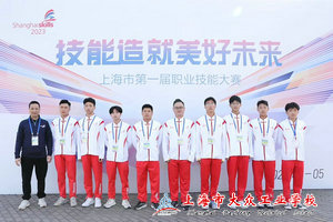 4月22日,以“技能造就美好未来”为主题的上海市第一届职业技能大赛开幕式在上海汽车会展中心举行。由现代制造系师生组成的嘉定区参赛代表队参加了此次开幕式。