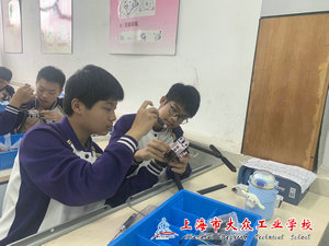 为帮助广大高中学生接触科技前沿,了解职业院校课程的特色,提升动手能力和解决问题的能力,嘉定区各高中学校组织高一学生到大众工业学校参加学工实践活动。我校现代制造系敞开实训室,开设无人机装调课程,为嘉定高中学生提供平台,本课程由金健明和谢恩浩老师主讲,沈丽华和梅舜飞老师辅助。