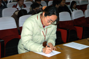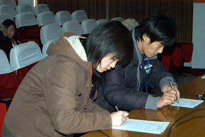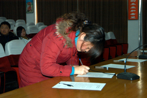最后按照参赛项目,在指导老师奚立川、尉欢、陶海凤和陈晔的带领下,全体同学满怀斗志紧跟老师,在协议书上签下了自己的名字,誓师会也由此达到了高潮。