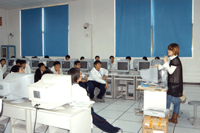 11月12日下午,计算机教学部0854班动漫方向的38位学生上了一堂别开生面的动漫知识课。0854班是计算机专业今年新开设的一个动漫方向的班级,学生从进校以来,对自己的专业方向不是很明白,也有不少学生不知道动漫到底是做什么的,以后就业从事什么工作。为此,教学部特地聘请了上海秉艺动漫制作公司的李老师来给我们的学生讲解有关动漫方面的知识。老师首先了解了一下学生中对动漫知道多少,对绘画技能达到了什么水平,然后针对我们学生的现状,介绍了动漫的概念,什么是ACG,Animation、Comic、Game。接下来李老师和学生进行互动,给学生演示了在Photoshop图形软件中如何使用绘图板进行绘画,在老师的笔下,一幅诩诩如生的卡通动漫小女孩十几分钟就完成了。学生都非常感兴趣,惊叹老师能在这么短的时间内画得这么好。也有学生跃跃欲试,要上台一试高下。
