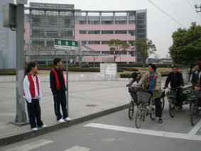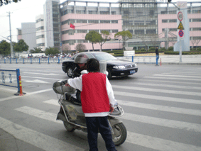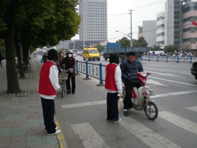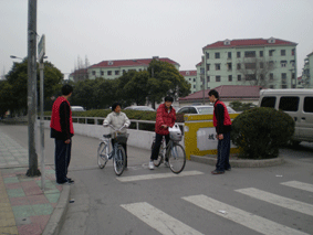 3月6日中午,计算机教学部的“阳光小队”8名志愿者走出校园,参加义务活动。本次活动内容是在交通路段繁忙的环城路和城中路交界的十字路口帮助协管员疏导过路车辆及行人。