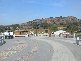 进入园内,首先映入同学们眼中的是一座古色古香的小桥,桥下是清澈的湖水。不远处是几座小山,而山脚下的几间小茅屋,让人仿佛置身于陶渊明的室外桃园之中,忘记了平日里的烦恼。