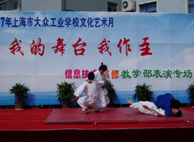 一曲《想唱就唱》拉开了演出的帷幕,一群青春靓丽的女孩用自己美貌的歌声和潇洒的舞姿点燃了舞台的气氛,想唱就唱,唱出了心声,唱出了气势。配乐诗朗诵《感恩的心》那缓缓道来话语,仿佛是老师的教诲,朴实中见真情。二人唱《童年》,一下子把我们心带回了那纯真的校园时代,无论是即将离校的同学还是刚踏入学校的学生,轻快悠畅的歌曲,总能引起大家的共鸣。舞蹈《好日子》,4个女同学踏着节奏感强的秧歌步,扭出了热情,扭出了活力。悠扬的长笛和婉转的二胡是最佳的组合,才艺表演《泉水叮咚》,给炎炎的夏日送来了阵阵凉爽的风。而台上英姿飒爽的女将们用她们精湛的柔道技艺表演赢得了如潮的掌声,她们的功夫连男同学都汗颜,简直是“巾帼不让须眉”。最后在小组唱《明天会更好》的歌声中结束了本场演出。