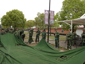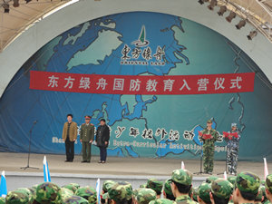 踏上绿舟,走进国防。在东方绿舟,紧张而又充实的三天生活既增长了同学们的视野,又培养了同学们顽强的意志。拓展训练,训练同学们团结互助、永不言败的精神;寻宝活动,训练同学们团队合作、野外辨别方向的能力;野外搭帐篷的活动,锻炼同学们动手动脑、手脑协作的能力;军事活动,让同学们更加深入的了解枪械构造、战地救护等方面的知识。在这几天里,有很多场景都令人难忘和感动。例如,在拓展训练中,我们看到了,为了完成任务,大家齐心协力,团结合作,尽自己最大的全力为班级争光;在战地救护训练中,通过教官幽默、认真的讲解,同学们在欢声笑语中学到了很多简单的救护的知识。