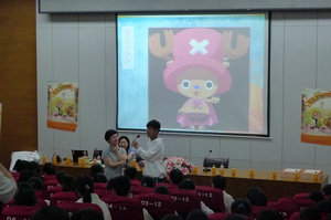 第二个环节便是看图说话,随着老师向大家展示出的一张接着一张熟悉的图片,同学们积极参与抢答的热情也变得更加踊跃,当然其中也产生了一点小插:有个别同学因太过踊跃以至于还没听清老师的问题就站了起来就行抢答,结果却没有猜对答案,最后引来大家的一阵欢笑。互动很快结束,接着老师还让大家欣赏了一些由学生原创的“动漫”作品。这一环节是最让同学们感到震惊的,通过完美的画面拼接成善心悦目的艺术作品本来就是一件很了不起的事情,况且每一个作品都是那么的逼真和细腻,更重要的是它所叙述的故事和传达的思想值得每位同学深思。