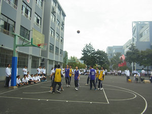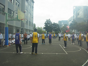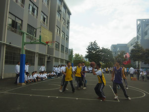 9月25日中午12:20分,计算机教学部130502班与数控教学部130904班在学校1号篮球场地展开了一场精彩纷呈的篮球赛。参赛同学刚刚穿好球衣,就开始摩拳擦掌,跃跃欲试了。随着哨声的响起,比赛正式拉开帷幕,很快,130502班就以默契的配合赢得了两分,围观同学祝以热烈的掌声。但对手也不甘示弱,奋起直追,就这样你追我赶,前半场以6:8的紧张比分画上句号。稍作休息,两队互换场地后比赛继续进行,刚开始抢球,就发生了一点意外,计算机教学部的一位同学不慎摔到,腿上、胳膊和手上都开始流血,班主任和同学都让他下场休息,但这位同学却坚持要把比赛打完。看到这一幕,同学们都很感动,而这感动也转化成了更响的呐喊助威声。而对手也非常的强劲,他们配合默契如行云流水一般,很快把比分拉开了一大截,最终计算机教学部以8:24的比分输了这场比赛,但大家并没有因此而气馁,因为他们知道失败乃成功之母,只要能在比赛中发现自己的不足,并勤加训练,未来一定能够看到属于自己的成功。