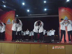 《国家》这首歌表达的是祖国人民团结一心共创辉煌的主题。就像歌词里唱的“我爱我的国,我爱我的家,我爱我国家”相信这不仅是一次简单的唱歌比赛更是对大家很好的爱国主义教育。为了让节目视觉上更新颖,指导老师决定配合相应的手语表演,为此,参加手语表演的同学很早就开始了练习,而那些肢体不太协调的同学更是从老师那里借来视频,抓紧一切课余时间进行反复的强化。训练很辛苦,但没有一位同学喊累。因为他们知道这次的演出比赛,代表的是整个教学部的形象和水平。