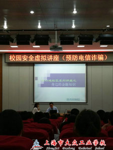 2017年5月10日下午15:00,我校阶梯教室内,信息工程系全体学生在班主任老师的带领下,一同参加了由上海嘉定民生村镇银行组织的防范电信诈骗的宣传讲座,学习了如何预防电信诈骗的相关内容。