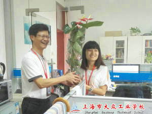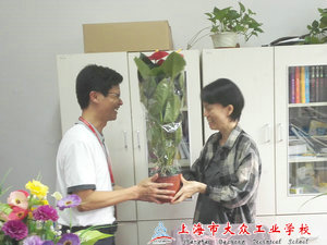 2017年9月6日中午,信息工程系办公室的老师们像往常一样在办公室备课、批阅学生作业,班主任时而喊几个学生布置一下班级工作……突然,一阵敲门声,推门而进的是校党总支书记、校长冯明老师,冯书记捧着鲜红的火鹤花笑道:“礼轻情意重,感谢各位老师的辛勤工作,在这里提前祝你们教师节节日快乐!”