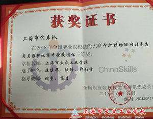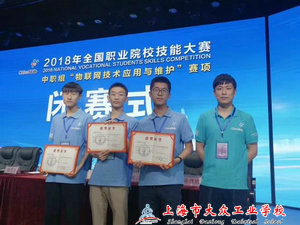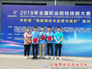 2018年5月31日,校工会主席朱凤芬、信息工程系主任朱慧老师和谢芳、杨岩四位老师带领160502班陈建华、陆伟、郑丙材三名学生共赴吉林省长春市机械工业学校参加了于6月2日上午9:00开始的全国职业技能大赛物联网技术应用与维护(中职组)大赛并获三等奖。