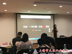 活动共分七个流程,主持人贺词后,先由上海市第二轻工业学校教务处主任倪虹为我们分享了教学能力大赛的选题设定及参赛礼仪,接着,超星集团区域副总孔鑫凯利用超星“学习通”APP在与老师们的互动中为大家讲解了如何使用“一平三端”打造智慧课堂的操作步骤和关键点,在各种形式的人机互动中,现场的氛围一度达到了高潮。而后,上海市逸夫职业技术学校的姚玮琼老师为我们分享了她的一堂信息化数学课堂,为在场的老师们带来了新的启示。下午的流程包括了上海商贸旅游学校校长李小华为我们分享的他对教学能力大赛获奖作品的解读,以及最后,参加活动的老师们进行了圆桌小组分组讨论等。