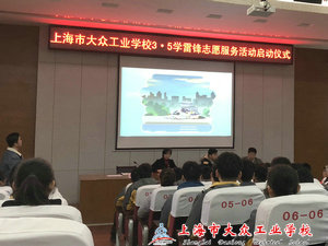 2019年2月27日中午,上海市大众工业学校组织各年级学生代表在阶梯教室举行了学雷锋志愿服务活动的启动仪式。参与会议的有校党总支副书记杨建英老师、菊园新区团工委副书记、宣传科徐赟程书记,菊园新区百姓宣讲团副团长李超老师等。