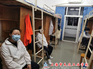 上午8:30,全体住宿生率先从东校门测温入校,在值班教师的帮助和引流下,学生分别进入寝室进行内务打扫。170502班班主任黄媛媛早早地等候在住宿区,分别检查了男女生宿舍的卫生情况。