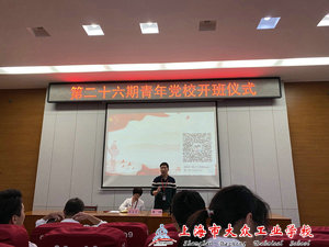 2020年10月14日15:10分,上海市大众工业学校于阶梯教室召开了第二十六期青年党校开班仪式。校党总支副书记杨建英、团委副书记王顺及全体青年团员参加了此次会议。