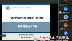 聚焦优质资源,推进专业教学为进一步推进计算机网络技术专业教学资源库的建设任务,2022年9月19日上海电子信息职业技术学院通信与信息工程学院召开了线上市级专业教学资源库推广研讨会,上海市大众工业学校信息工程系尉欢、周倩倩两位老师共同参加。