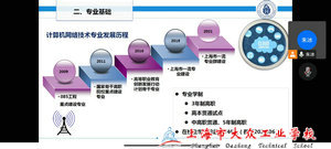 朱冰老师是上海电子信息职业技术学院计算机网络技术专业负责人,他主要从四个方面进行了介绍。首先是专业背景,目前计算机产业快速发展,需要更多的网络技术专业人才,网络工程师等需求增长71.2%,针对与计算机网络技术相关专业不同岗位的需求培养,本校毕业生就业率达到100%,就业前景好。第二是专业基础,本专业有3年制,高本贯通试点,中高贯通、5年制高职,2021年获评上海市一流专业群建设,专业基础扎实。第三介绍了计算机网络技术人才培养方案,帮助同学们了解了相应课程及要求。最后提出期望,例举我校毕业生在高职参加各类比赛获奖,激励同学们学好专业知识,提升专业技能,为后续专业更好发展打下基础。