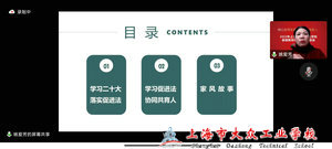 本次会议包含两个主题报告分别是:上海开放大学副教授、上海市终身教育研究会家庭教育专业委员会主任姚爱芳作《学习促进法,协同共育人》,姚老师为与会老师详细解读了《中华人民共和国家庭教育促进法》,并通过生动的案例,指导老师们结合法律内涵做好家庭教育指导;上海市教育评估院职成教所项目主管胡兰作《新时代中职家庭教育指导:新挑战与新路径》专题报告,胡老师从项目背景、相关文件、家庭教育指导实践等多个方面详细解读了新时代中职校家庭教育指导的新挑战与新路径。